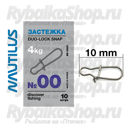 Застежка Nautilus Duo-Lock snap NE0400 - одна из самых известных и удобных застежек, которая применима практически при любых способах ловли - спиннинг, фидерная ловля или подледная ловля хищника на балансир или блесну. Застежка выполнена из прочной, сталистой проволоки.