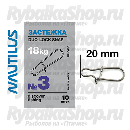 Застежка Nautilus Duo-Lock snap NE0400 - одна из самых известных и удобных застежек, которая применима практически при любых способах ловли - спиннинг, фидерная ловля или подледная ловля хищника на балансир или блесну. Застежка выполнена из прочной, сталистой проволоки.
