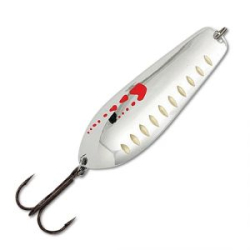 Утолщенный центр тяжести металлической пластины обеспечивает лучшие полётные качества, а также способствует уравновешенной активной игре. Гладкая поверхность данной блесны активно бликует при проводке, создавая визуальный эффект чешуи настоящей рыбки. Активные колебания хищник безошибочно фиксирует своим основным органом чувств – боковой линией.