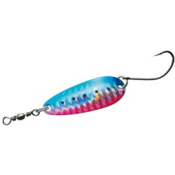 Самая маленькая приманка в семействе MIARI, была создана для ловли прудовой форели. Но как показала практика, она прекрасно держит струю. Многие охотники за голавлем и форелью, оценили ее по достоинству. Сложная форма блесны выделяет ее среди приманок этого типа. Конструктивные характеристики приманки дают ей возможность становиться на "ребро" под углом 70 градусов, такая игра блесны очень сильно привлекает хищника. За счет смещения центра тяжести к хвосту приманки она обладает хорошими полетными качествами, и стабильной игрой.