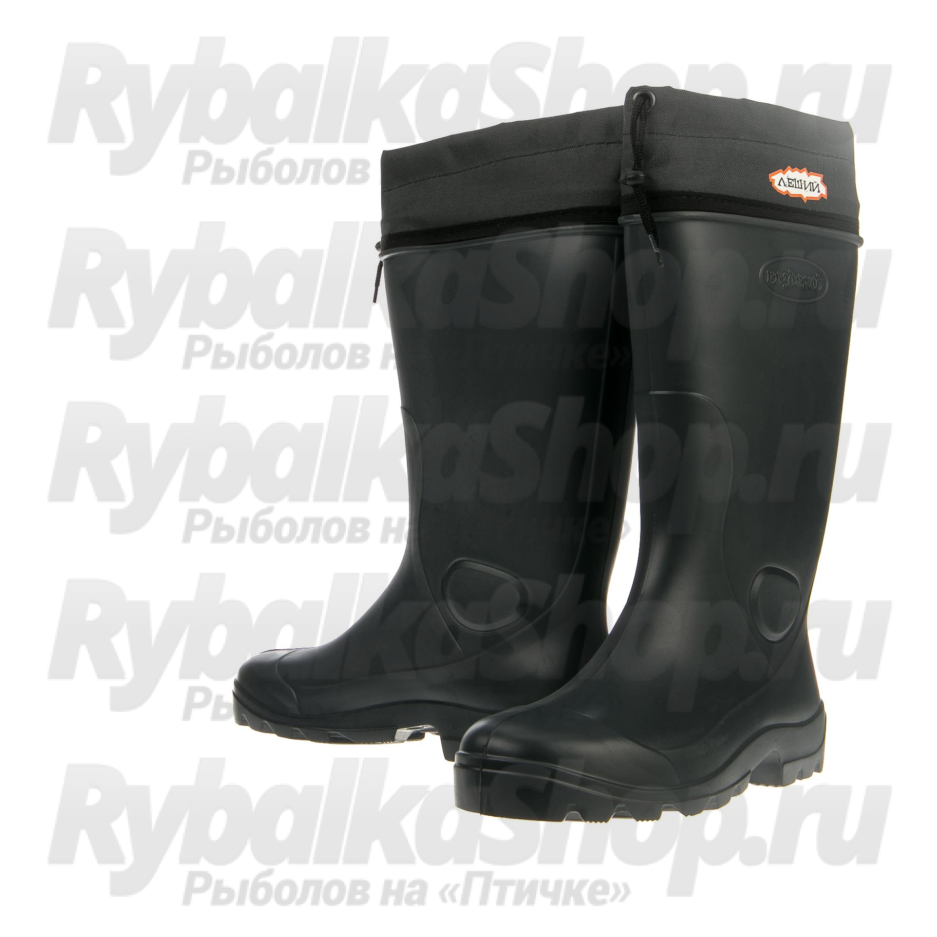 Модель «Леший» изготовлена из этиленвинилацетата (ЭВА).  Это легкий и упругий материал, имеющий хорошие амортизирующие свойства,  даже при очень низких температурах, устойчивый к растворителям и маслам. Пористая структура ЭВА создает «воздушную прослойку» и позволяет сохранять тепло.   Главное преимущество сапог «Леший» — это их вес, а также возможность чувствовать себя комфортно при температуре до -15 С, что позволяет использовать эти сапоги при длительной ходьбе, так и для продолжительного, малоподвижного пребывания на холоде. Высота сапога 38 см.