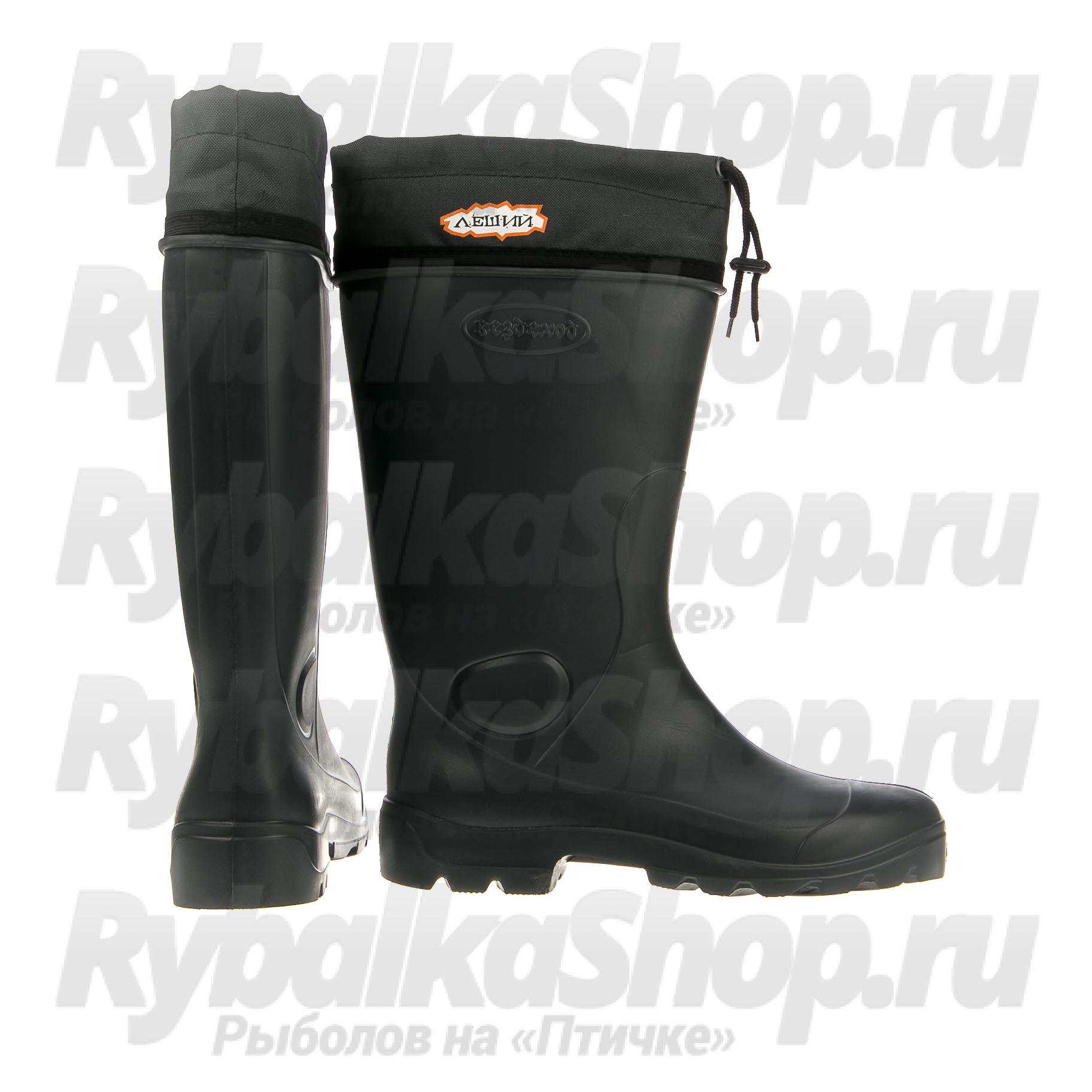 Модель «Леший» изготовлена из этиленвинилацетата (ЭВА).  Это легкий и упругий материал, имеющий хорошие амортизирующие свойства,  даже при очень низких температурах, устойчивый к растворителям и маслам. Пористая структура ЭВА создает «воздушную прослойку» и позволяет сохранять тепло.   Главное преимущество сапог «Леший» — это их вес, а также возможность чувствовать себя комфортно при температуре до -15 С, что позволяет использовать эти сапоги при длительной ходьбе, так и для продолжительного, малоподвижного пребывания на холоде. Высота сапога 38 см.