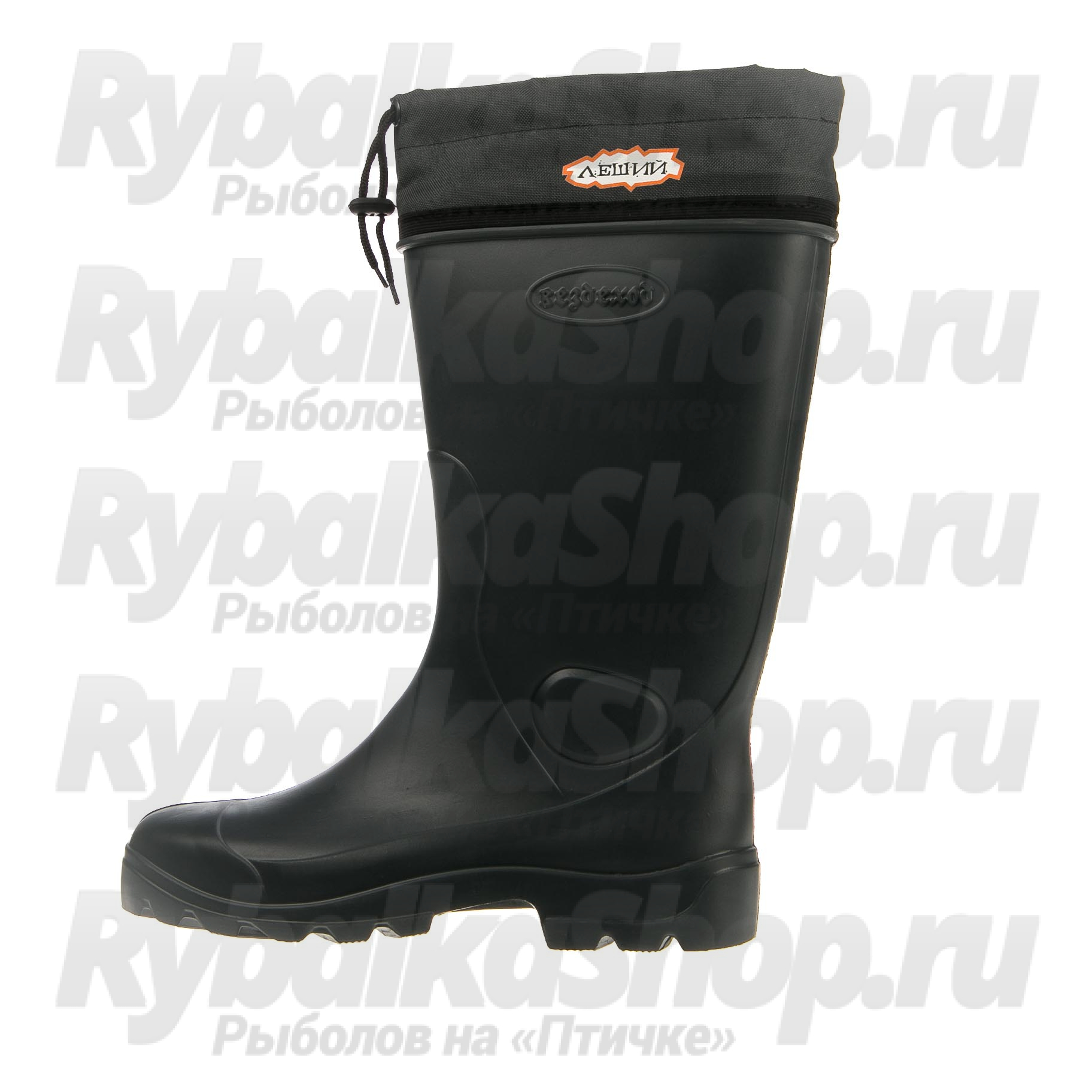 Модель «Леший» изготовлена из этиленвинилацетата (ЭВА).  Это легкий и упругий материал, имеющий хорошие амортизирующие свойства,  даже при очень низких температурах, устойчивый к растворителям и маслам. Пористая структура ЭВА создает «воздушную прослойку» и позволяет сохранять тепло.   Главное преимущество сапог «Леший» — это их вес, а также возможность чувствовать себя комфортно при температуре до -15 С, что позволяет использовать эти сапоги при длительной ходьбе, так и для продолжительного, малоподвижного пребывания на холоде. Высота сапога 38 см.