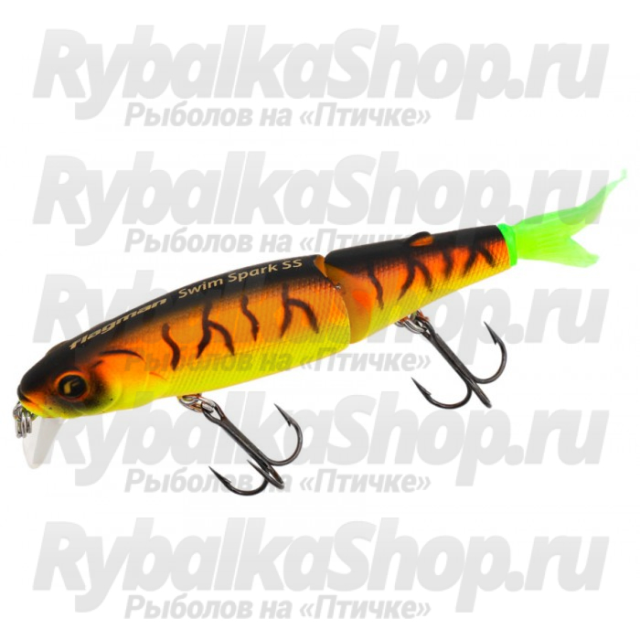 Оригинальный составной воблер Flagman Swim Spark, оборудованный хвостовым плавником из мягкого пластика. Конструкция соединения ограничивает свободу движения частей, что не сказывается негативно на работе воблера, но при этом снижает риск захлестов, как во время проводки, так и при забросе.
