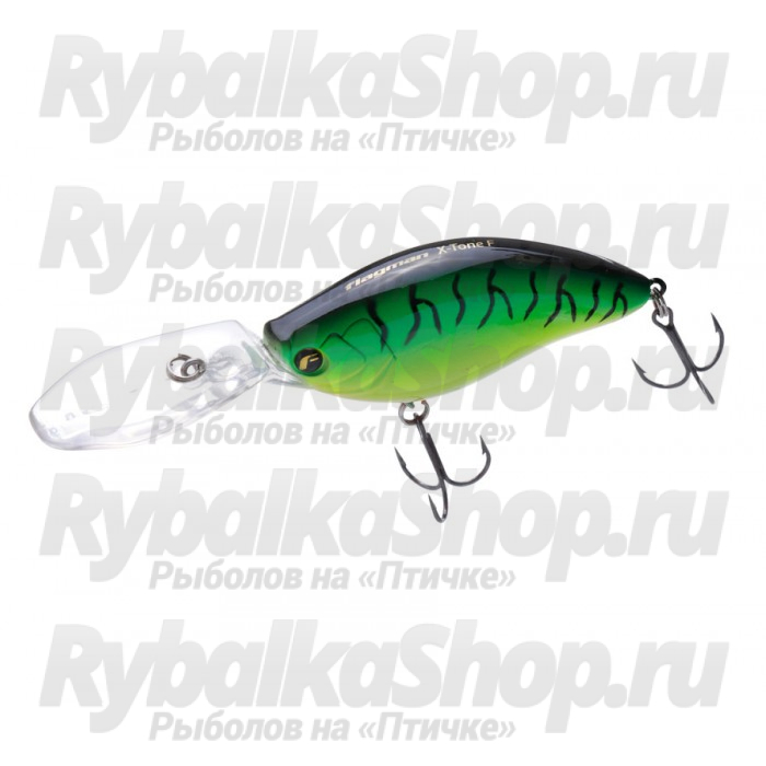 Кренк Flagman X-Tone, обладающий сверхактивной игрой, даже при самой медленной проводке. В воде сильно наклоняется вперед, благодаря чему длинная широкая лопасть прекрасно защищает тройники от зацепов за коряги. Очень быстро уходит в глубину, даже при медленной проводке, уверенно выходя на рабочий горизонт. Благодаря этому может с успехом применяться для спиннинговой ловли, а не только для троллинговой.