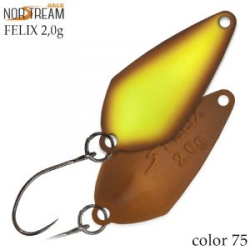 Felix – новинка 2018 года из форелевой программы Norstream Area - дальнобойная модель с достаточно активной работой на всех скоростях проводки. Универсальна и отлично привлекает как активную, так и пассивную рыбу. В линейке три варианта по весу/размеру – 2 г, 2,5 г, 4,3 г.