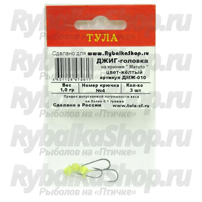 Джиг-головка, крючок Maruto желтая 0,7гр, крючок №4