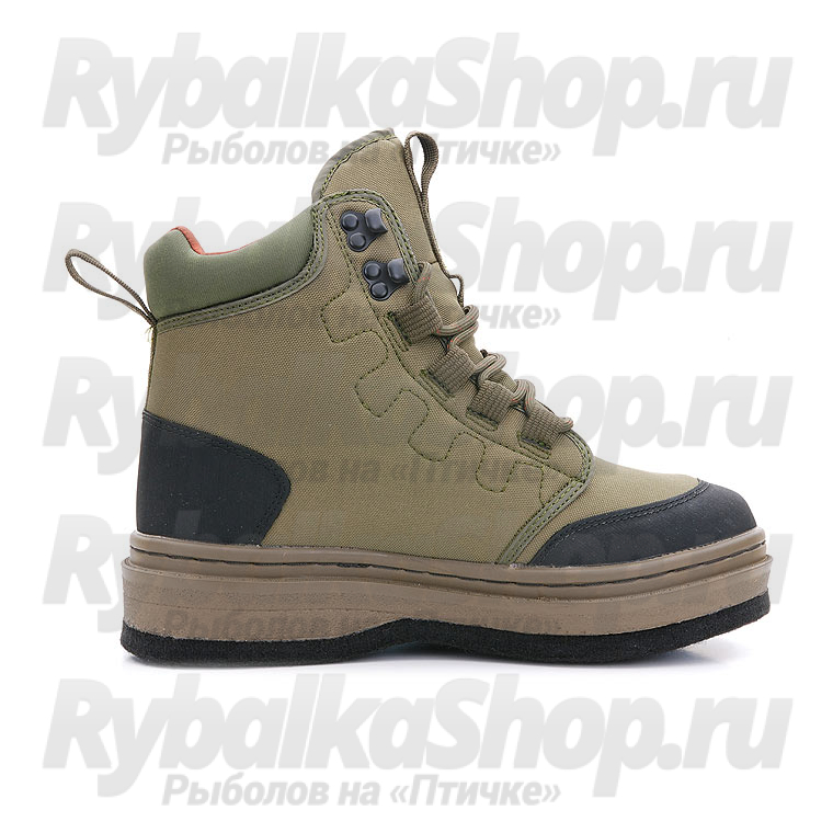 Ботинки оборудованы усилениями в районе носка и пятки для дополнительной защиты. Cпециальная войлочная подошва обеспечивает отличное сцепление с каменистой поверхностью при ловле взабродку.