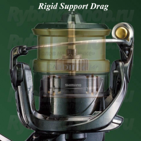 Разумеется, здесь применены все решения, которые мы находим у остальных новых углепластиковых катушек CI4+, в том числе изюминка Shimano — система X-SHIP, предполагающая наличие шарикоподшипника в задней опоре вала малой шестерни главной передачи, а также компактный и легкий Мagnumlite Rotor и особо стабильный и плавный тормоз Rigid Support Drag.