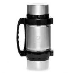 Сбоку имеется удобная и широкая ручка, облегчающая транспортировку термоса. Есть также съёмный плечевой ремешок, регулируемый по длине - хорошее дополнение к ручке.