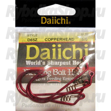 Daiichi Copperhead – офсетный крючок с пружинкой, позволяет легко и без особых усилий закрепиться в приманке, не подвергая ее излишним деформациям. Такое крепление достаточно надежно, чтобы хорошо удерживать наживку.
