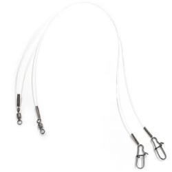 Поводки Flagman X7 из семижильного стального тросика, оснащенные вертлюжками и тройниками. Предназначены для использования в оснастках при ловле на живца. Поводки не подвержены коррозии, проволочные бандажи на петлях отличаются надежностью и аккуратностью. Благодаря темному покрытию такой поводок практически незаметен в толще воды.