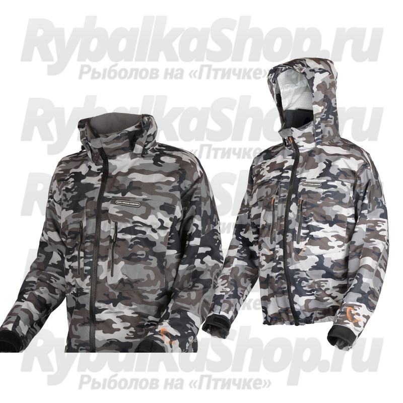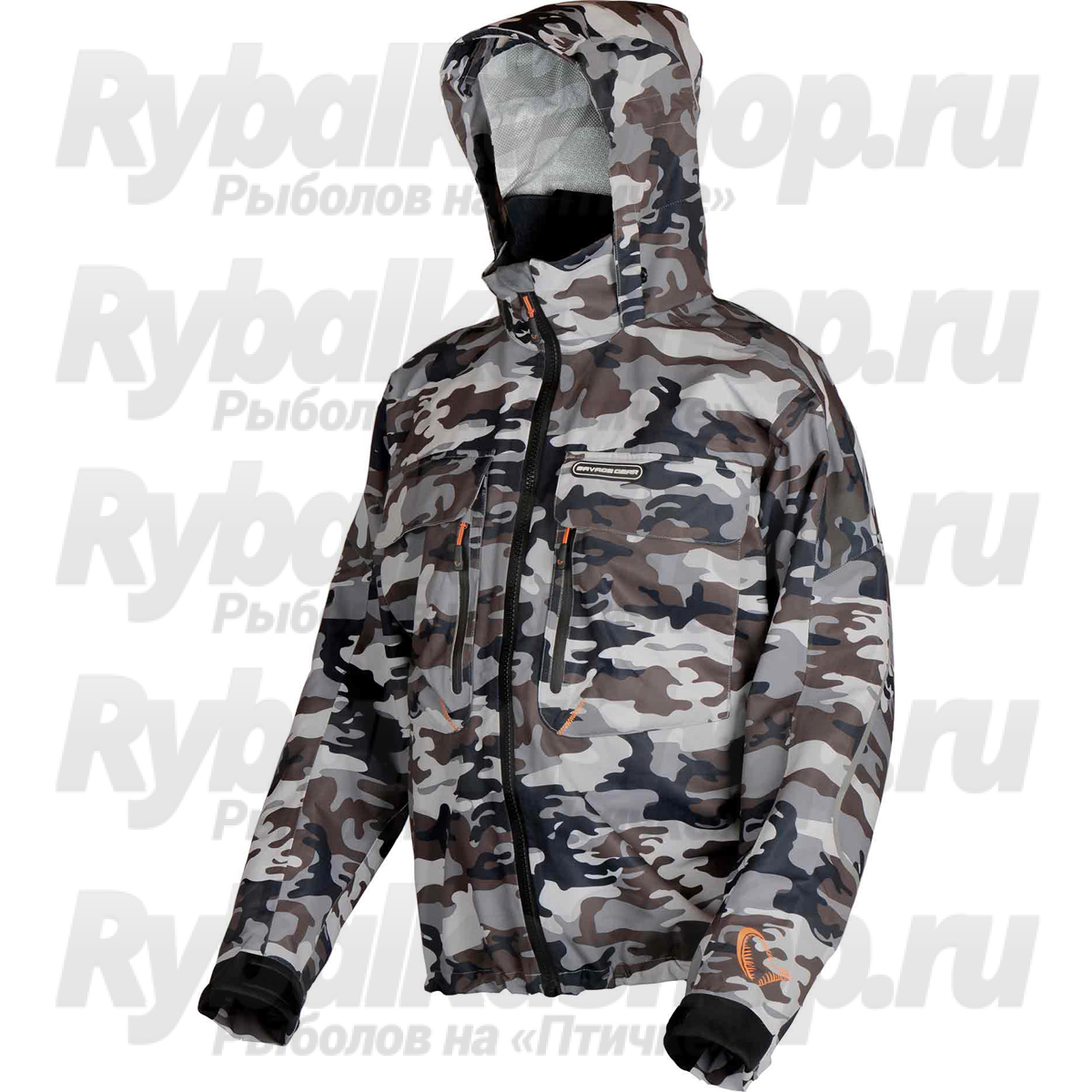 Забродная водонепроницаемая куртка Savage Gear Camo Jacket, выполненная в красивой камуфляжной расцветке. Изготовлена из прочного синтетического мембранного материала 150D*320D Taslon.