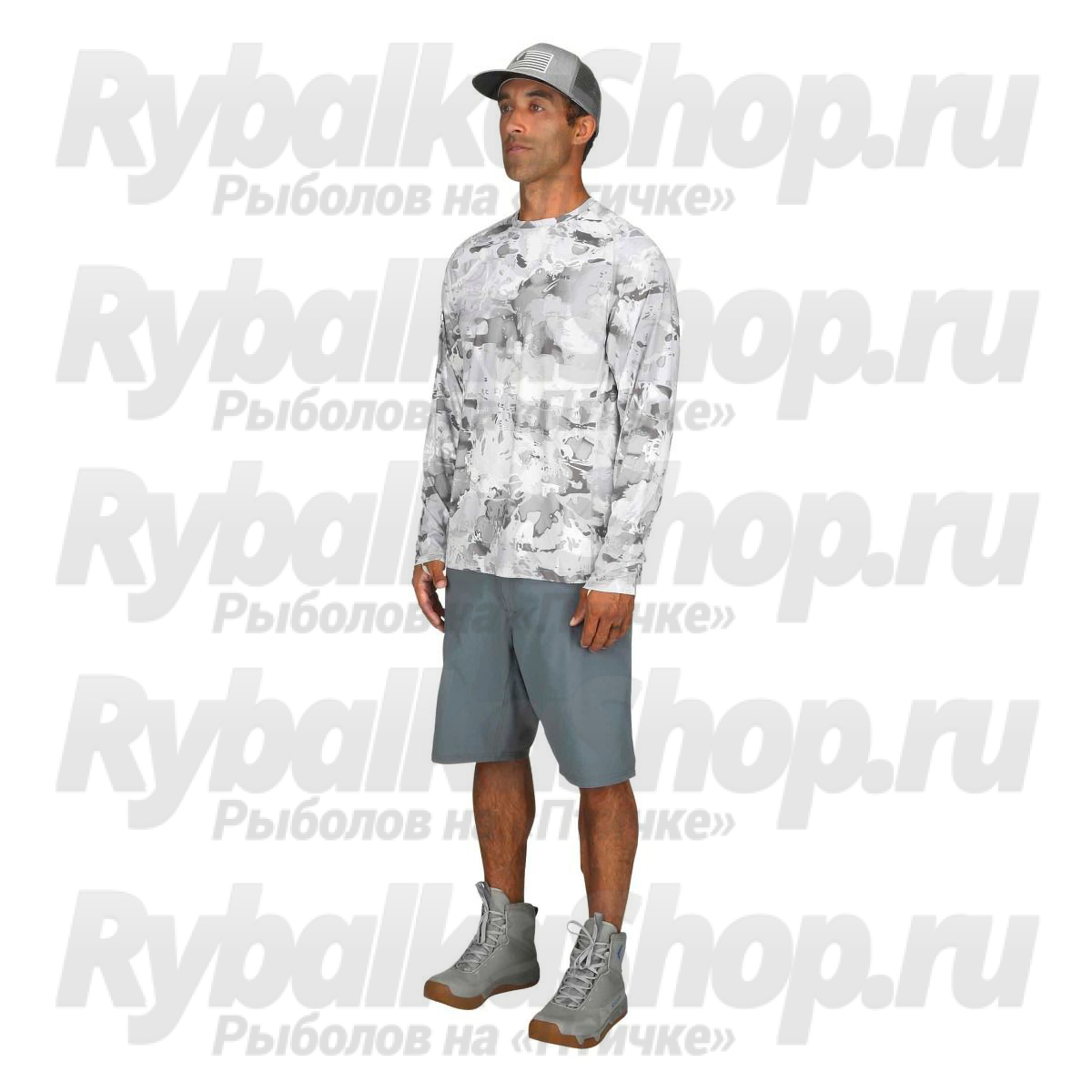 Описание Simms SolarFlex LS Crewneck Print Cloud Camo Grey