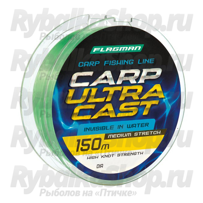 Леска Flagman Carp Ultra Cast 150m прозрачна и имеет легкий зеленоватый оттенок. Такая расцветка идеальна для ловли в водоемах с незамутненной водой.