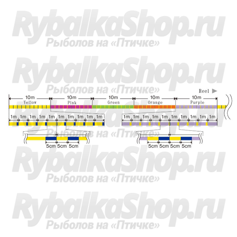Прочный шнур универсален и подходит для применения в разных способах ловли. Многоцветная окраска плетенки позволяет более точно контролировать выполнение заброса, а также заглубление приманки. Цвет: 10 м Х 5 цветная маркировочная линия (желтый + розовый + зеленый + оранжевый + фиолетовый).
