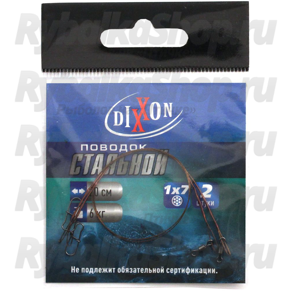 Поводок рыболовный DIXXON плетения 1x7 изготовлен из качественной легированной стали. Поводок оснащен высококачественной вертлюгой (для соединения с основной леской) и вертлюгой с застежкой (для крепления приманки). Наличие двух вертлюгов значительно уменьшает закручивание лески.