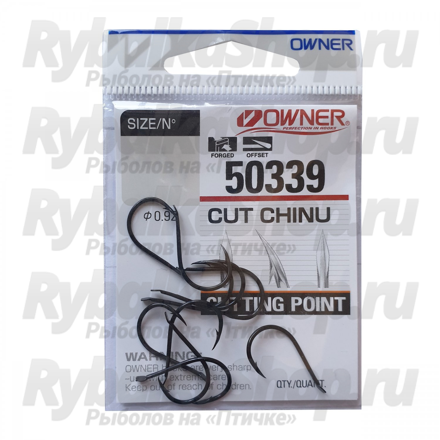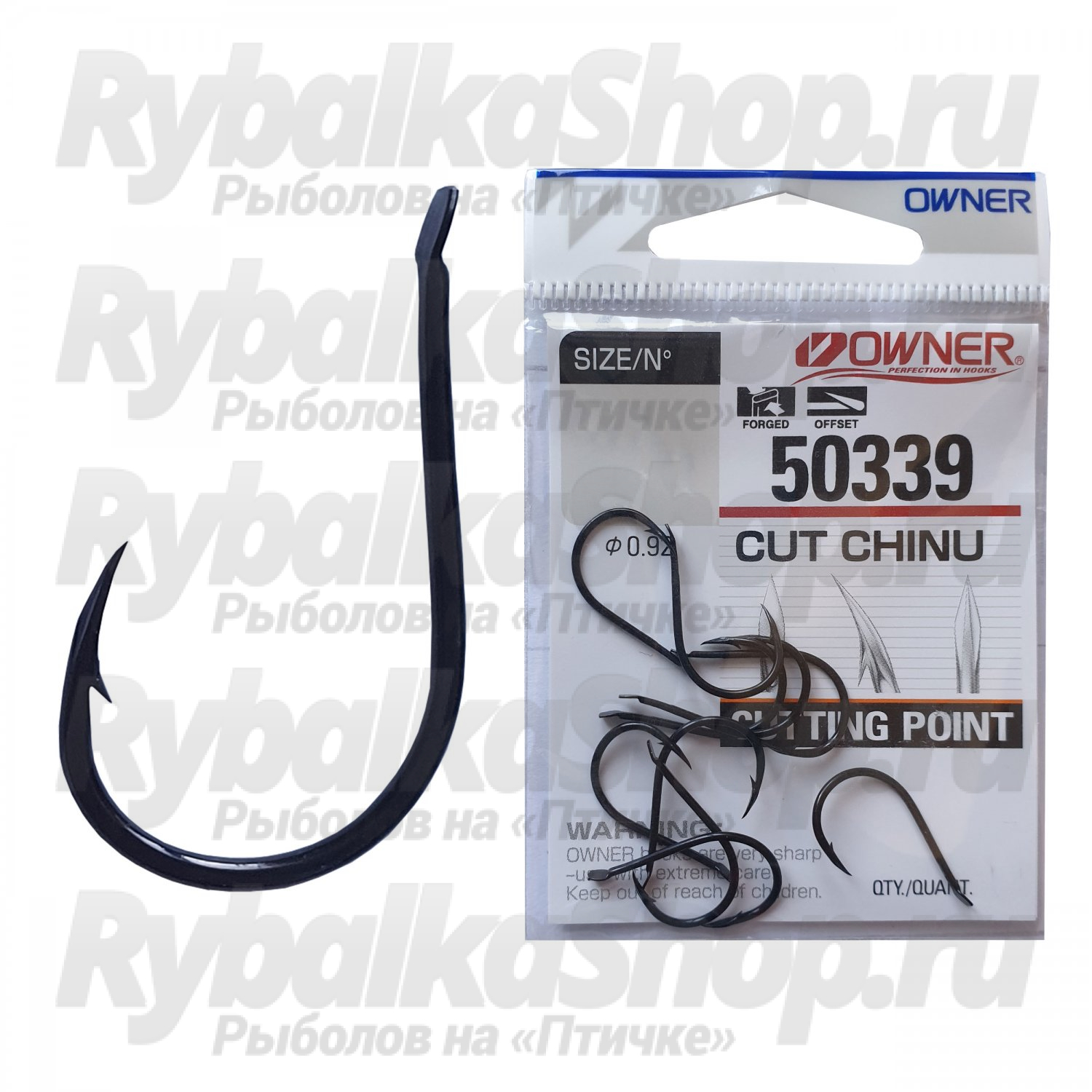 Чуть отогнутое в сторону цевья острейшее жало крючков Owner 50339 Cut Chinu способно легко пробить пасть любой рыбы даже при слабой подсечке. Нередко случается и самоподсечка. Рекомендуются для ловли крупной рыбы в основном на крупные насадки донными снастями. Круглый загиб, нормальной длины цевье, лопаточка для привязывания.