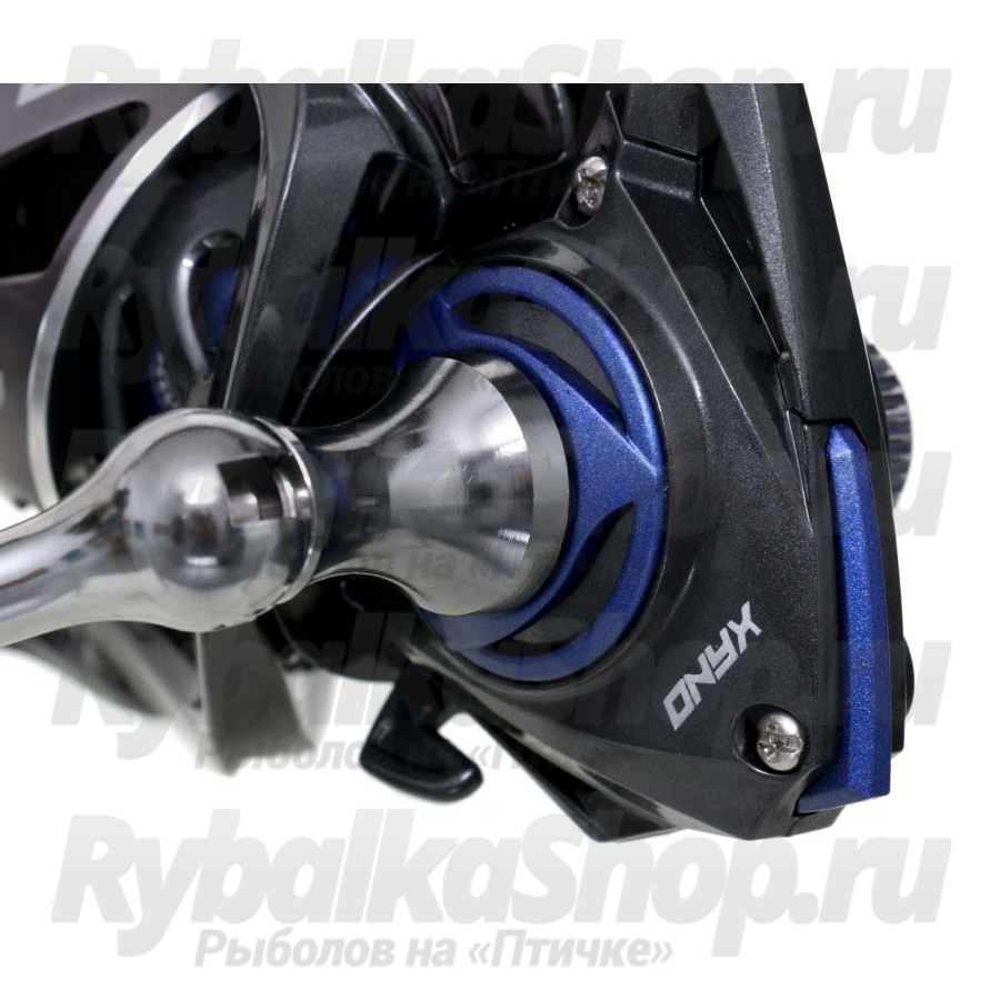 Точеная алюминиевая шпуля и ролик лесоукладывателя со сверхтвердым напылением предполагают свободное использование тонких шнуров и лесок, а усовершенствованный кулисный механизм обеспечивает их качественную укладку. Поверхность шпули «опоясана» полосой с мелкой насечкой, которая препятствует проворачиванию намотанной лески или шнура под большими нагрузками. Все катушки Onyx оснащены облегченными шпулями с коническим буртиком, что также положительно влияет на дальность заброса.