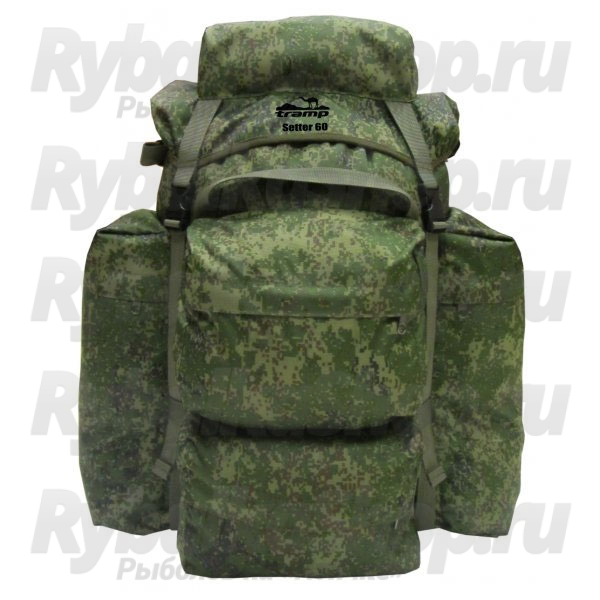 Tramp Setter – походный рюкзак, который подойдет для туризма, рыбалки, охоты. Модель отличается функциональностью, практичностью и удобством использования. Каркас из жесткой пенки, несъемный клапан с карманом наверху, тубус, два кармана на молнии на фасаде, два больших кармана на молниях по бокам. Подвесная система не регулируется по росту, однако, наличие мягких, регулируемых, анатомических лямок, пояса из широкой стропы и грудных стяжек позволяет удобно носить рюкзак людям разного роста. Непромокаемое дно и две ручки для переноски дополняют конструкцию рюкзак. В линейке моделей представлены рюкзаки объемом 45 и 60 литров в разном цветовом исполнении.