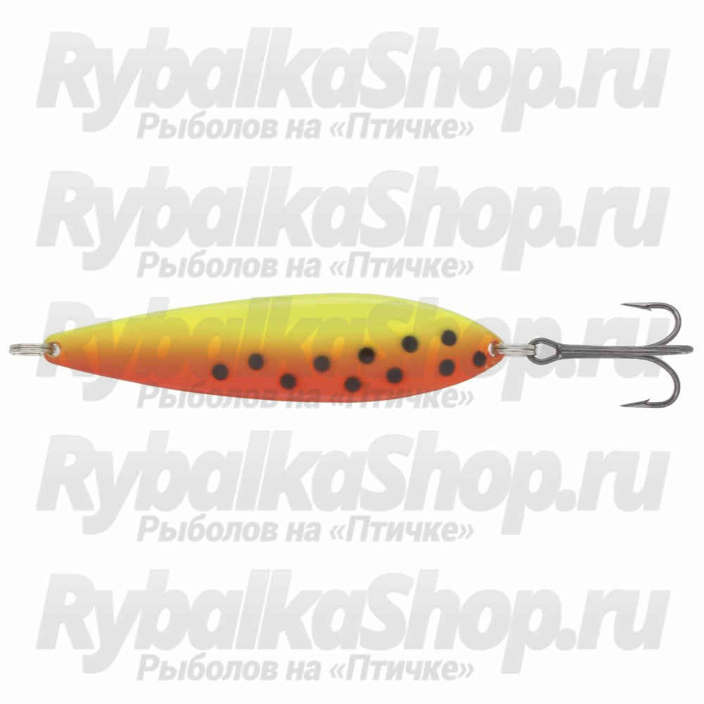 Лицевая часть блесны имеет яркий дизайн, который понравится привередливым лососям. Внутренняя - блестящая для заманчивых бликов.