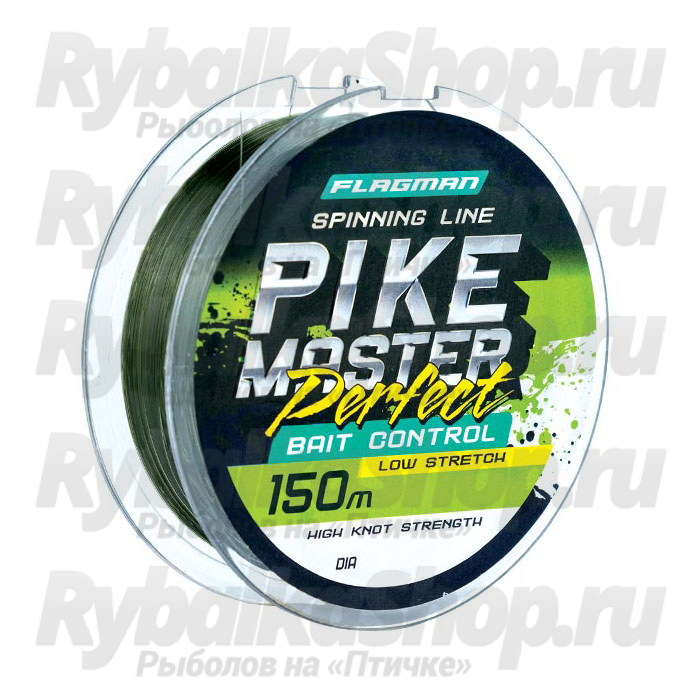Flagman Pike Master 150m - жесткая, малорастяжимая леска, специально предназначенная для ловли щуки. Она обеспечивает превосходный контроль приманки и уверенную подсечку, даже на большой дистанции. Высокая прочность и устойчивость к абразиву позволяют не потерять приманку или трофей при ловле среди коряг и зарослей водных растений. Темно-зеленая полупрозрачная расцветка хорошо маскирует леску в типичных местах обитания щуки — на заросших водными растениями мелководьях.