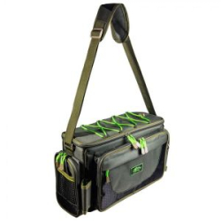 Большая, функциональная сумка Три Кита для увлечённых рыбаков, обладающих большим количеством рыболовных принадлежностей. В основном отделении на молнии располагаются четыре пластиковых коробки. Спереди сумки находится небольшое отделение на молнии, в котором находится еще одна пластиковая коробка меньшего размера. По бокам сумки располагаются два сетчатых кармана открытого типа. Спереди сумки также нашит сетчатый карман открытого типа. Регулируемый по длине плечевой ремень. Дно сумки имеет водостойкую пропитку. Сумка Три Кита изготовлена из полиэстера.