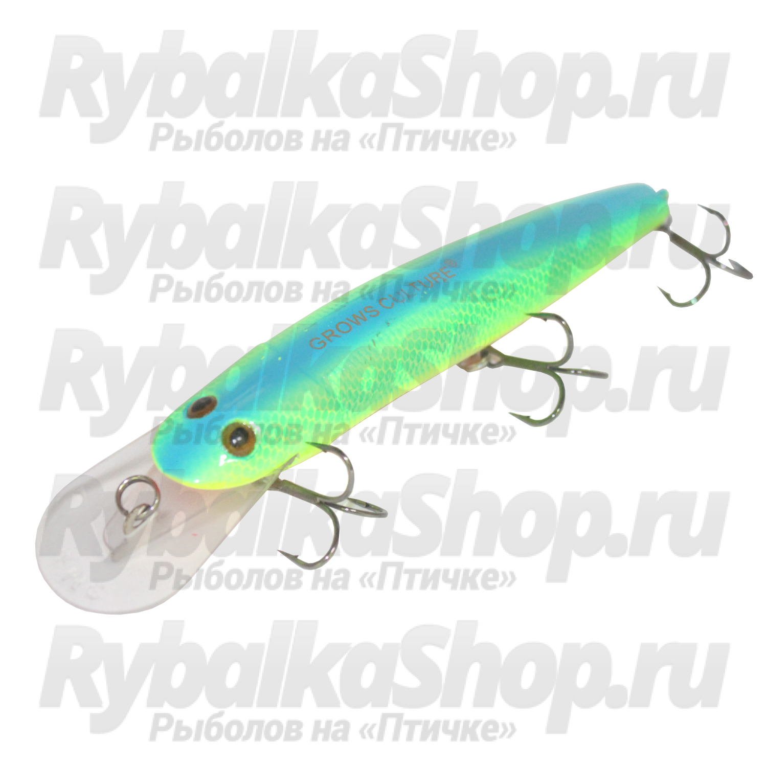 Grows Culture "Халка" 1408 125мм - копия знаменитого Halco Sorcerer 125. Приманка характеризуется особой игрой: корпус приманки колеблется из стороны в сторону во время проводки. Воблеры издают легкий шум и оснащены широкой лопастью, которая гарантирует исключительную прочность при возможных соприкосновениях с подводными препятствиями.