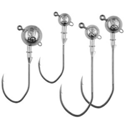 Форма головки – шар, это лучший вариант как для работы приманки, так и для результативности всей ловли, который идеально подходит под все типы силиконовых приманок. Для литья джиг-головки использован крючок VD-079 №12/0, вес свинцовой части - от 10 до 52 грамм. Маркировка веса: голографический глаз с цифрой внутри.