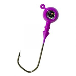 Форма головки – шар, это лучший вариант как для работы приманки, так и для результативности всей ловли, который идеально подходит под все типы силиконовых приманок. Для литья джиг-головки использован крючок №8/0, вес свинцовой части - от 8 до 52 грамм. Маркировка веса: голографический глаз с цифрой внутри. Джиг-головка окрашена в фиолетовый цвет флуоресцентной краской, которая светится под воздействием ультрафиолетового излучения.
