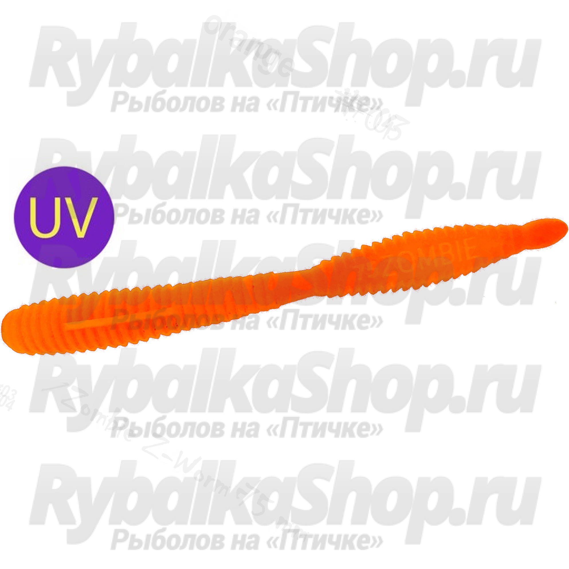 Силиконовая приманка Zombie ZWorm (Червь) цвет Оранжевый (Orange) UV