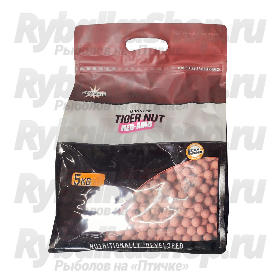 Dynamite Baits Premium Monster Tigernut - бойлы состоящие из муки тигровых орехов, перемолотых тигровых орехов и молока тигровых орехов в качестве природного жидкого аттрактанта. Натуральные компоненты неотразимы для карпа. Благодаря использованию тигровых орехов как основного ингредиента, бойлы Dynamite Baits (Динамит бейтс) содержат в себе незаменимые аминокислоты, такие как лизин, а также необходимые витамины и минералы. Содержат эксклюзивную ванильную добавку для усиления вкуса и добавку из всесезонных аттрактантов. Имеют необходимый коэффициент растворимости независимо от температуры воды.