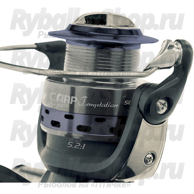 Mikado Carp Temptation - карповая катушка с бэйтраннером. Графитовый корпус. Передний фрикционный тормоз. Сбалансированный ротор и мгновенный антиреверс. Переключатель под корпусом. Полая дужка, устойчивая к деформации. Конусный ролик с шарикоподшипником. Рукоять переставляемая, с винтовой фиксацией. Управление и настройка усилия бэйтраннера – традиционно для данных катушек находится в задней части корпуса. В комплекте основная дюралюминиевая шпуля и одна графитовая.