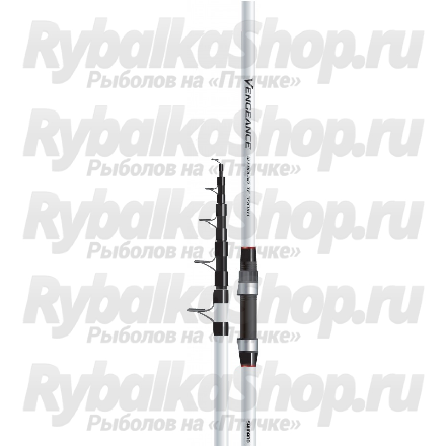 Shimano Vengeance Allround Telescopic – мощное телескопическое универсальное удилище. Выпускается 4 модели линейки, две длиной 360 м и две – 390 м. Удилища рассчитаны на ловлю тяжелыми оснастками крупной морской рыбы. В пресных водоемах эти удилища можно использовать для ловли карпа белого амура или толстолобика, а также сома на донные или поплавочные снасти. Бланки состоят из 5-ти пустотелых колен, выполненных из прочных и легких композитных материалов. Система пропускных колец Hardlite, которой оснащаются Vengeance Allround Telescopic, отличается крепкими рамами из нержавеющей стали, способными выдерживать серьезные нагрузки при вываживании крупных трофеев.