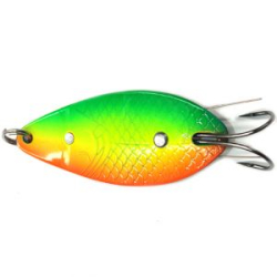 При своей довольно большой массе приманка имеет очень компактное плоское тело с габаритом 40 мм. и общая длина приманки 75 мм. Хотя, есть в этой серии приманки массой 14 грамм (65 мм.) и легкие 5-и граммовые (50 мм.), так что и под снасть и под условия и у вас точно получится подобрать самый удобный вариант в десятке расцветок. Невысокая цена уловистой приманки дает каждому спиннингисту отличную возможность приобрести сразу два-три или еще больше вида расцветки, чтобы или подобрать самую уловистую приманку в данном месте в данное время или чтобы были разные варианты для разных рыб и мест по глубинам и течению.