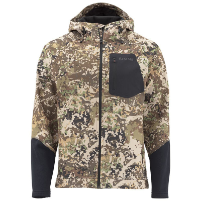 Технологичная рыболовная толстовка Simms Katafront Hoody River Camo с эластичными боковыми вставками, достаточно стильная для повседневной городской жизни.