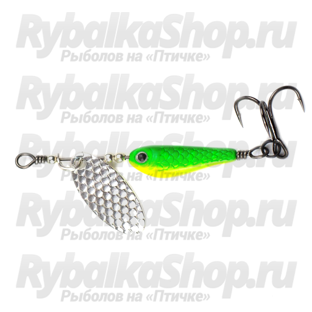 Mad Fish Acula – универсальная уловистая блесна. При создании приманки было изучено множество эксцентриковых вертушек японского производства и лучшие решения реализованы в данной модели блесны. Приманка имеет рельефный овальный лепесток и основание в виде детализированной рыбки. При проводке блесна создает не только блики, но и колебания, которые провоцируют хищника на атаку. Данная модель хорошо зарекомендовала себя при ловле на отечественных водоемах. Вес блесны – 9 грамм.