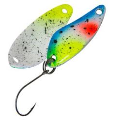 Ультралайтовая блесна Trout Bait Micro Atom 2.4g идеально подходит для ловли некрупного хищника в различных условиях. Конструктивные особенности позволяют использовать её как в спокойной воде, так и на быстротечных реках. Приманка отлично сбалансирована, поэтому обладает впечатляющими полетными данными. Она хорошо работает с различными видами анимации и имеет яркую размашистую игру, которая заинтересует даже мирную рыбу.