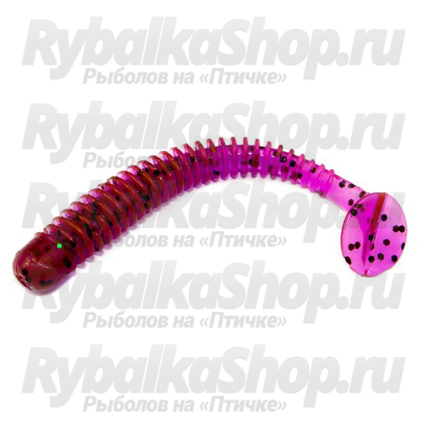 Приманка Русская Фишка Катюша имеет червеобразное тело с множеством ребер, сплюстнутое в горизонтальной плоскости для удобства использования ее на офсетном крючке, оканчивается среднего размера пяткой в виде овала. Имеет очень стабильную и привлекательную для рыбы игру на малых весах, а ребристое тело начинает извиваться при малейшем движении спиннинга.