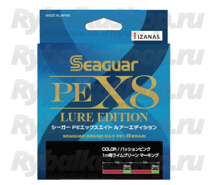 Seaguar PE X8 Lure Edition - универсальный плетеный шнур. Изначально эта плетенка, как и многие другие модели от Seaguar, изготавливалась для внутреннего японского рынка, но недавно стала поставляться и в другие страны. Шнуры изготовлены по самым высоким японским стандартам. Они имеют восьмижильное плетение. За счет его плотности плетенка Lure Edition меньше подвержена износу. Отсутствие растяжимости обеспечивает максимальную чувствительность. Шнур имеет красную окраску с 15-сантиметровыми зелеными отсечками через каждый метр. Это позволяет контролировать дальность заброса и заглубление приманки. В серии представлено два варианта размотки - 150 и 200 метров.