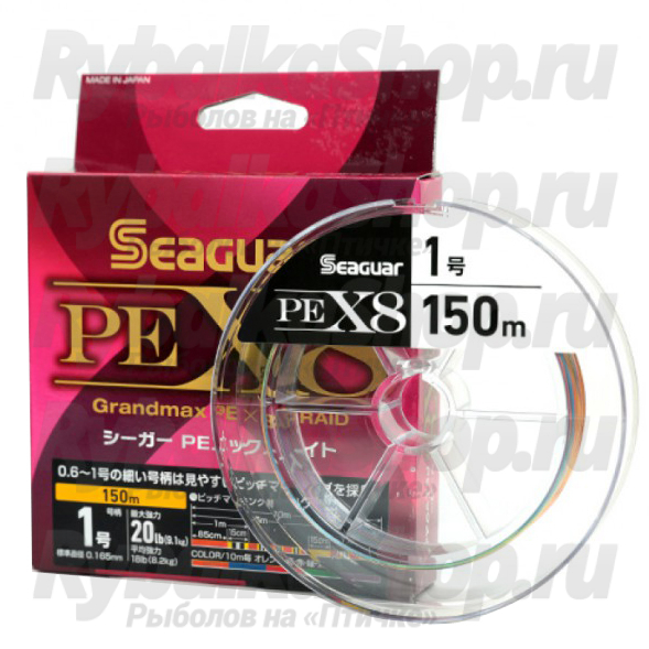 Восьмижильный шнур Seaguar PE X8 имеет высокие рабочие показатели и подойдет для любых рыболовных задач. Эта серия хорошо подходит для всех видов спиннинговых дисциплин, в том числе для джига. Плотное плетение 8 полимерных волокон делает сечение шнура максимально круглым. Плетенка благодаря своей гладкой поверхности легко скользит по кольцам спиннинга. Это увеличивает дистанцию заброса приманки. Круглое сечение и гладкость упрощают процесс намотки на шпулю. Плетенка имеет высокие показатели разрывной нагрузки даже в малых диаметрах. Многоцветная окраска шнура с маркерами помогает контролировать размотку и следить за дистанцией ловли. Серия имеет две разных намотки - 150 и 200 м.