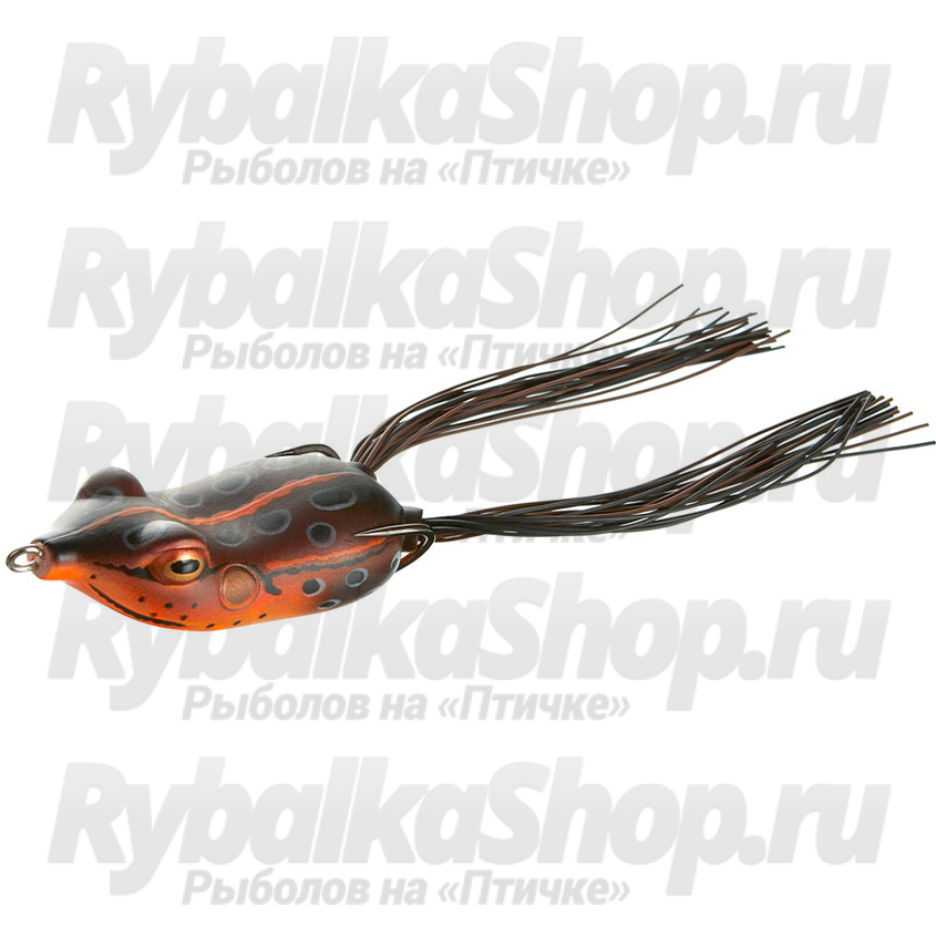 D-Frog - реалистичная силиконовая имитация лягушки от японской компании Daiwa. Поверхностная приманка без труда преодолевает растительность, что делает ее незаменимой при облавливании сильно заросших водоемов, даже когда ловить на обычные воблеры и блесны очень сложно. Незацепляемость Daiwa D-Frog достигается благодаря тому, что крючок, которым оснащена приманка, направлен острием вверх. Острие при этом достаточно плотно прилегает к телу. В воде приманка весьма реалистично играет. Анимировать и проводить топвотер можно самыми разнообразными способами. Тело приманки имеет два пучка силиконовых нитей, вызывающих еще больший интерес у хищника. Тело D-Frog изготавливается из мягкого материала и при поклёвке легко сжимается, быстро освобождая крючки, что гарантирует эффективную подсечку и снижает вероятность схода рыбы.