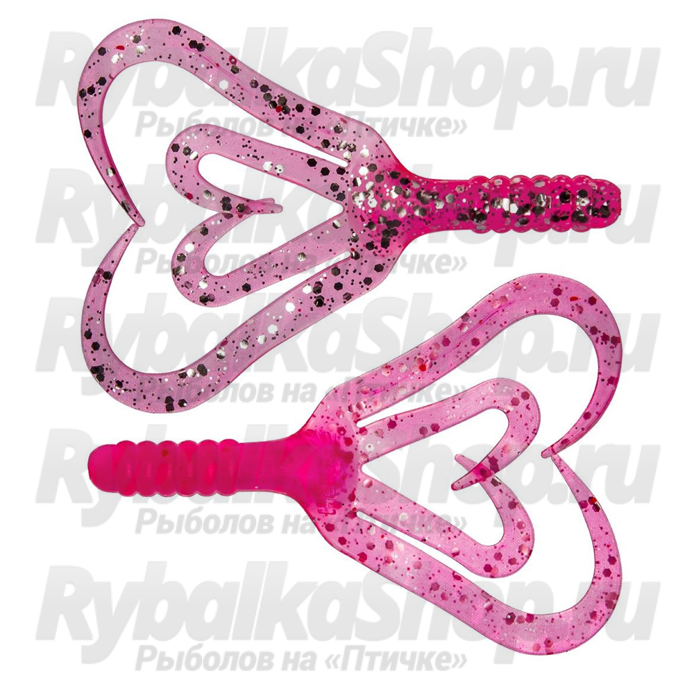 Силиконовая приманка Helios Credo Four Tail 2,35"/6 см Silver Sparkles & Pink10шт. (HS-20-035)