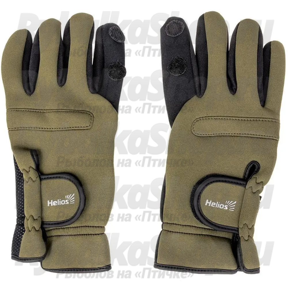 Перчатки рыбацкие неопреновые Helios Catcher, цв.хаки р.L (HS-HY-D14-L)