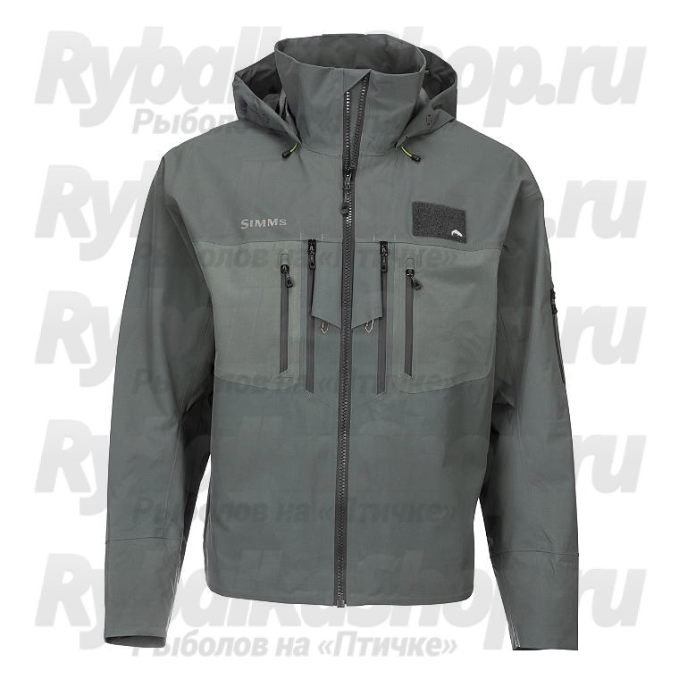 Водонепроницаемая куртка Simms G3 Guide Tactical Jacket, Shadow Green. Эластичный материал и специальный крой позволят вам с комфортом рыбачить весь день. Трёхслойная мембрана GORE-TEX® прекрасно отводит влагу от тела, в тоже время защищая от любого дождя и ветра. 7 карманов для снастей, 2 кармана с флисовым подбоем для согрева рук. Капюшон для рыбалки в самый сильный дождь.