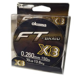 Okuma FT Braid X8 - новинка 2020 года - линейка недорогих восьмижильных плетеных шнуров от известного рыболовного бренда. Шнуры изготовлены из прочного полиэтиленового волокна обладают низким растяжением для высокой чувствительности. Плотное и гладкое плетение шнура имеет круглое сечение, что значительно увеличивает дальность и лёгкость заброса. FT Braid X8 является универсальным и доступным выбором, подходящим под любые методы ловли. Шнур желтого цвета хорошо заметен на любом фоне. Практичная размотка - 150 метров.
