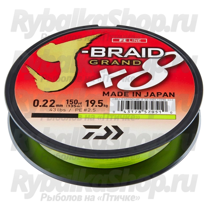 Шнуры J-Braid Grand изготавливают в Японии. Они идеально подходят для ловли как в пресной, так и в соленой воде.