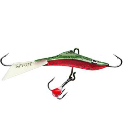 Бананообразный балансир Sprut Mikari #9 (22g/75mm) с крупным плавничком-килем на спинке. Форма ромба, имеющая в сечении четыре разнонаправленных плоскости тела с резкими гранями, создает в воде дополнительные завихрения и световые блики, привлекая внимание хищника издалека. Игра приманки мягкая, с довольно широкими уходами в стороны. Разворачивается в верхней мертвой точке через спинку и возвращается в исходную позицию, описывая плавный полукруг.