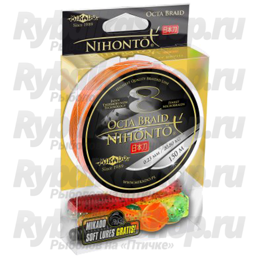 Описание Mikado Nihonto Fine Braid Orange 150м (+силиконовые приманки)