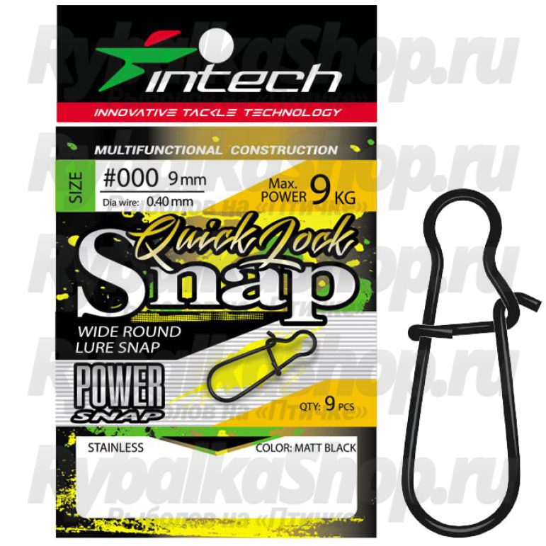 Intech Quick lock Snap Matt black - классическая американка, изготовлена из качественной пружинящей проволоки. Матово-черный цвет застежки отлично её маскирует в оснастке - по мнению большинства поклонников фидерной и донной ловли не броский цвет имеет ключевое значение. В отличии от подобных черных застежек, где краска быстро сходит, в застежках Intech применяется технология покрытия, образующая прямые связи молекул металла и краски, что дает однородный и стойкий окрас, устойчивый к внешним воздействиям.